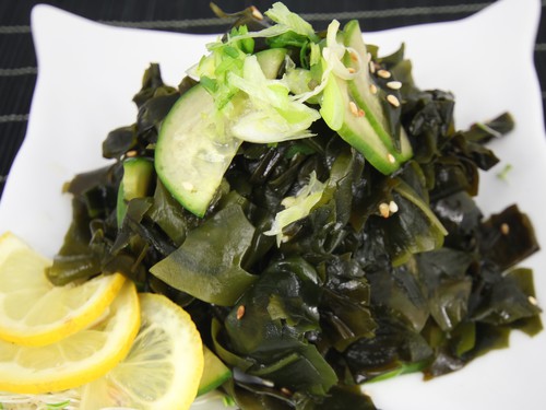 pieczony łosoś, sałata, ogórek, kampyo, serek -